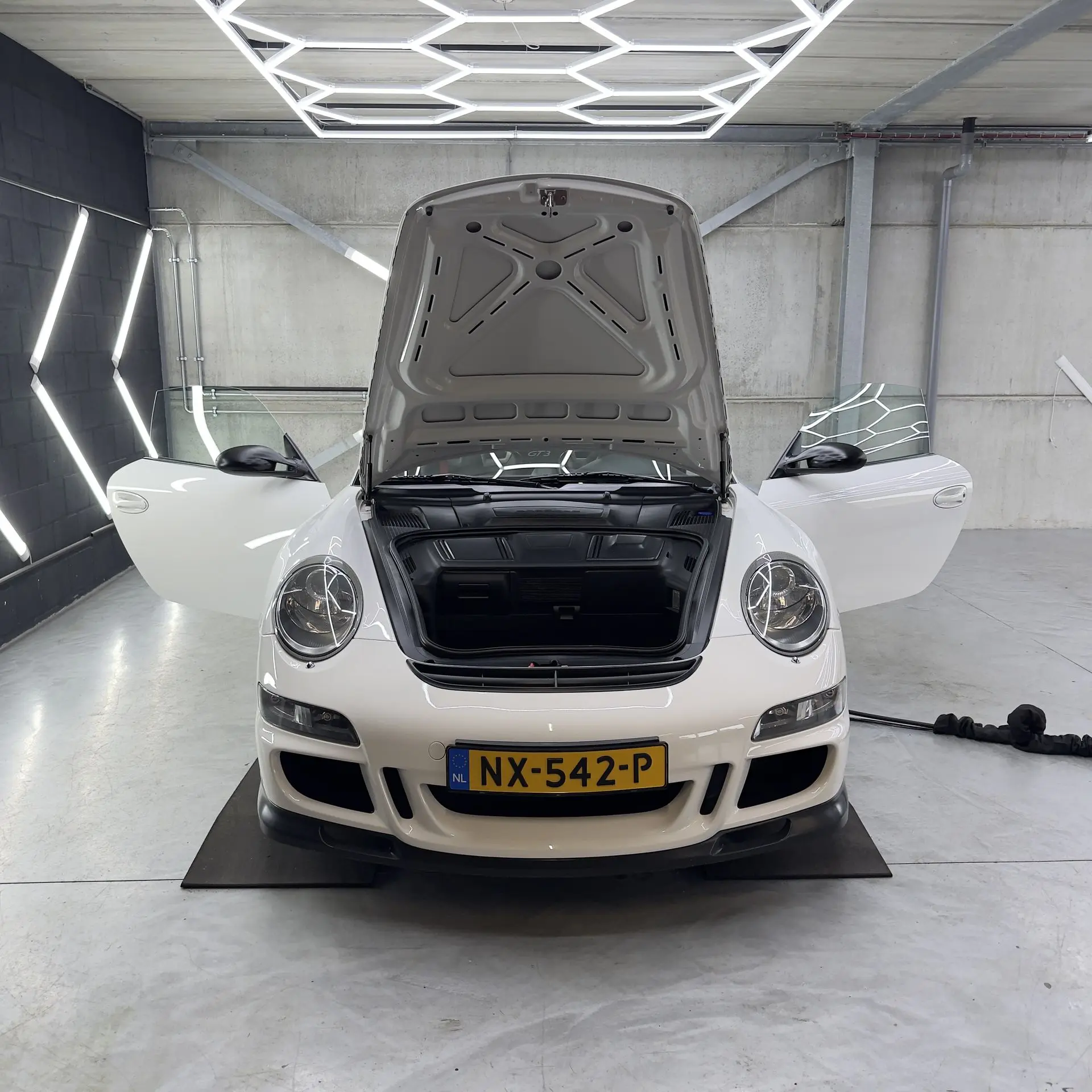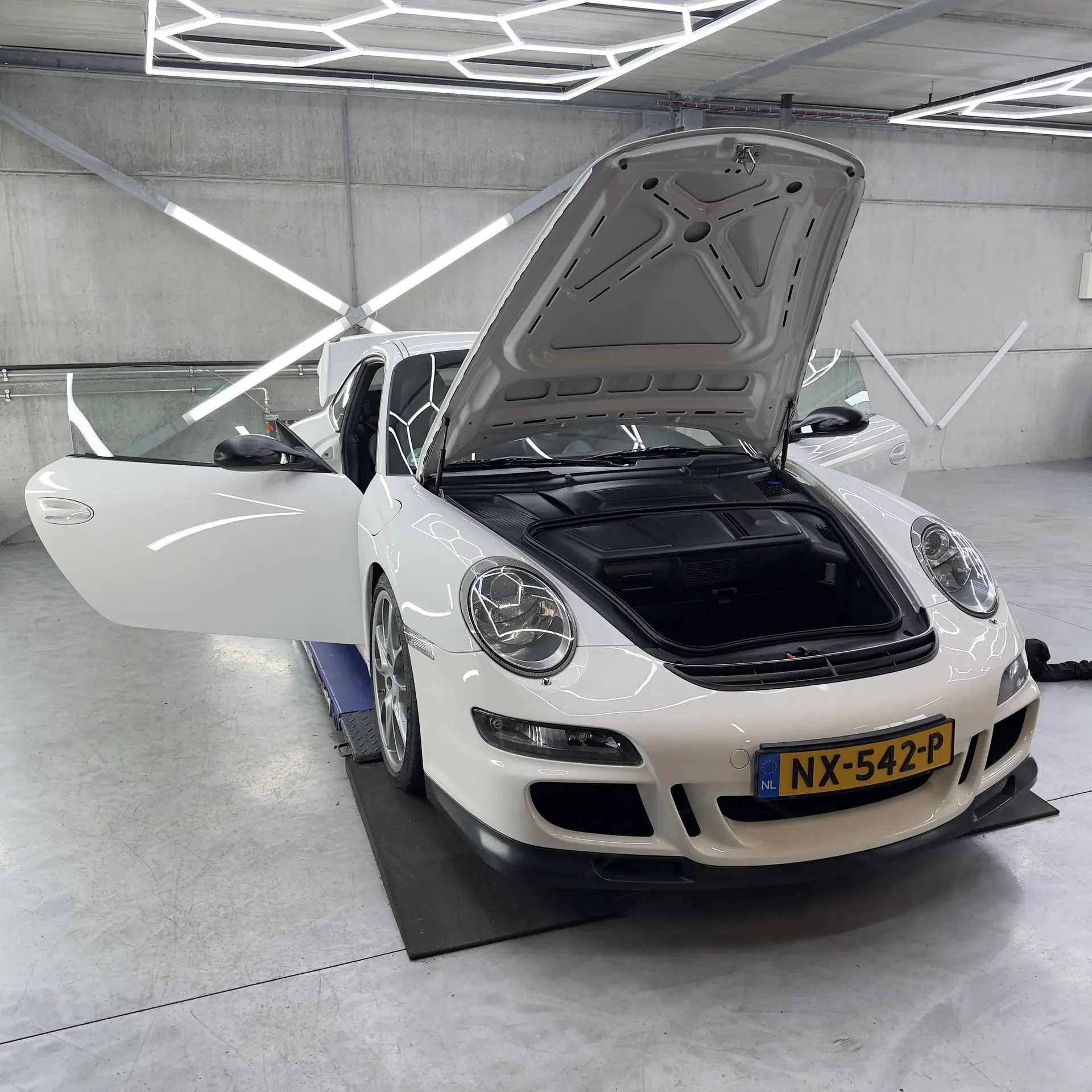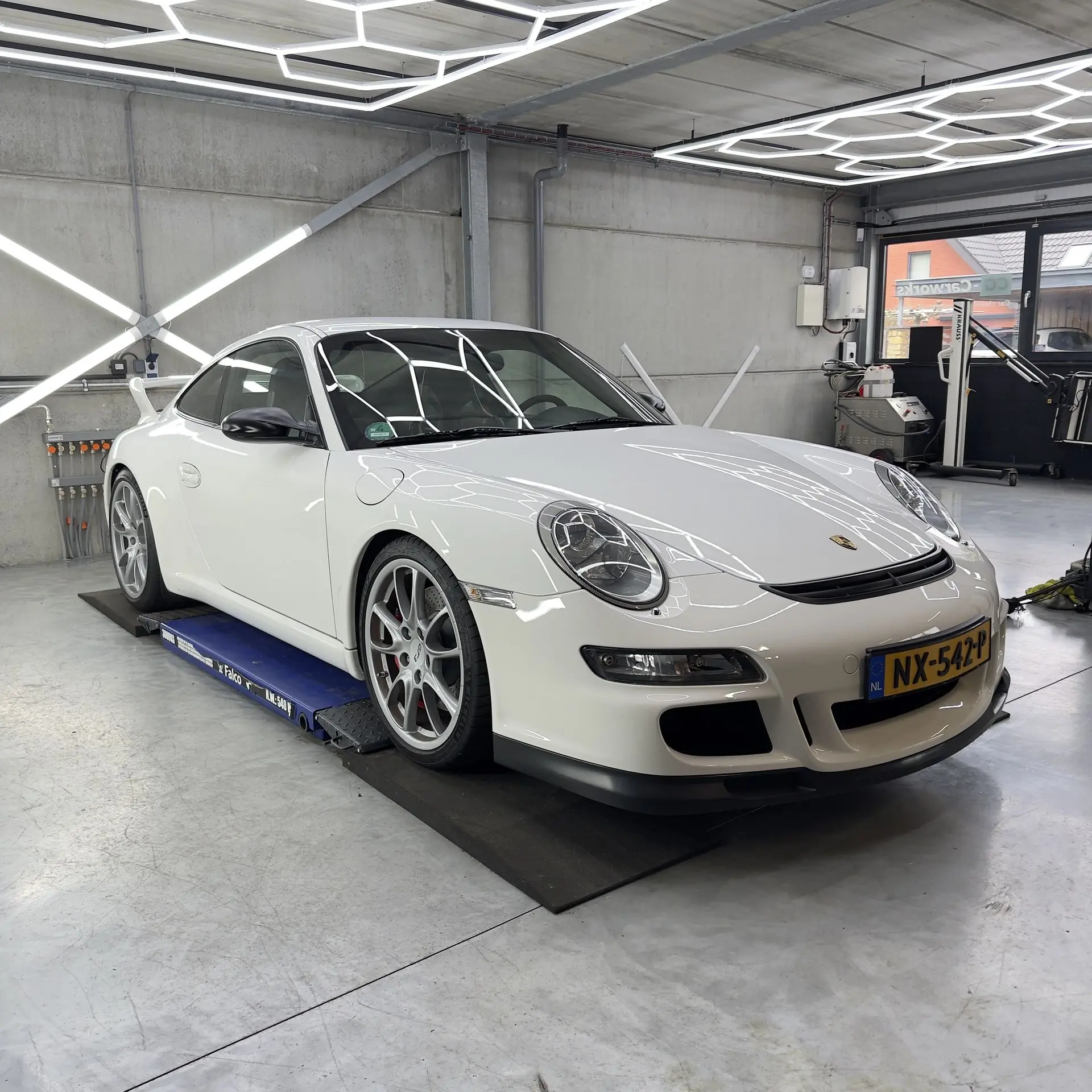 - Full official Porsche service history – all books present and stamped History fully verified by Porsche – everything checks out Last service performed at Porsche Centrum Gelderland Original 997.1 GT3 with Mezger engine – the final true GT3 in its purest form Underside dry-ice cleaned and treated with transparent protective wax High-quality ceramic coating applied to the paint Interior and exterior in excellent condition Drives and looks like it just left the showroom